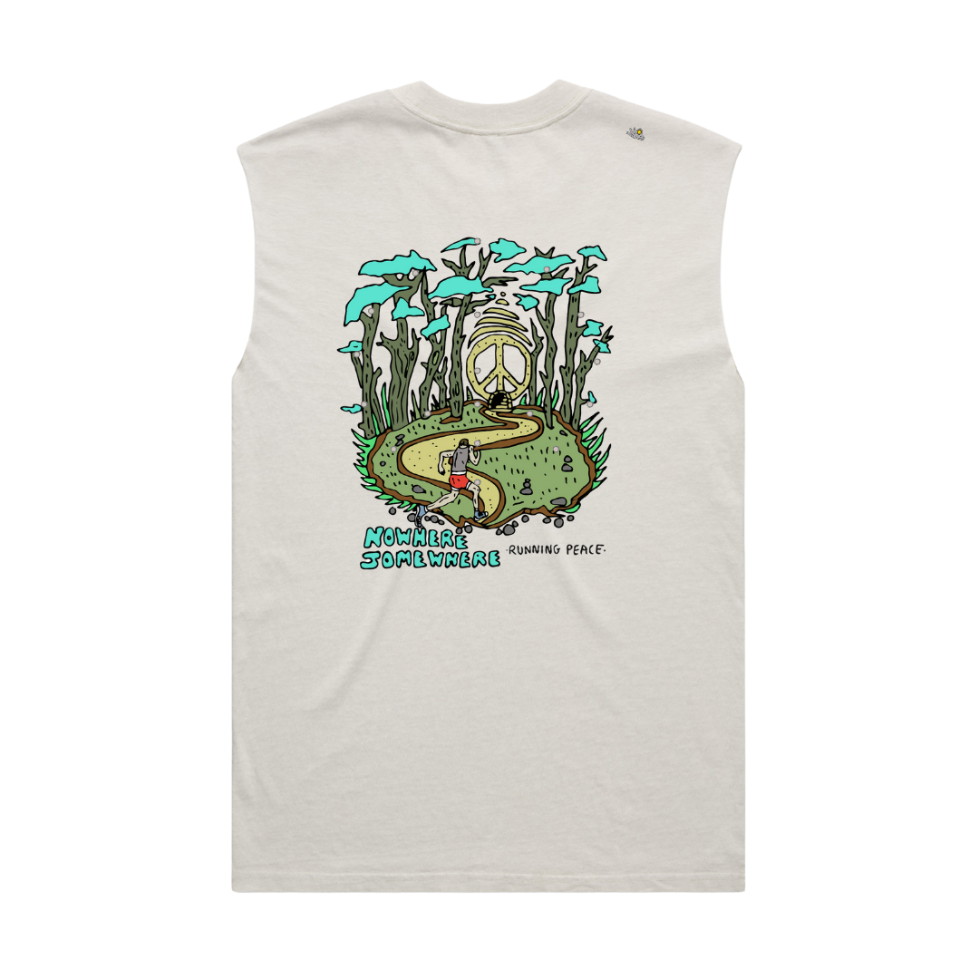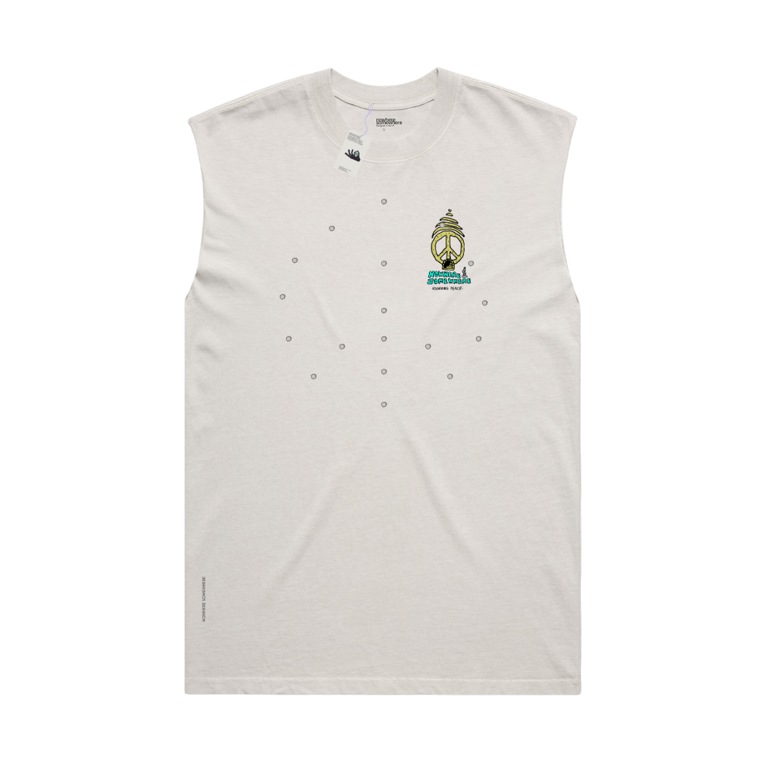 Nowhere Somewhere Peace Tee Tank in sand colour with custom artwork