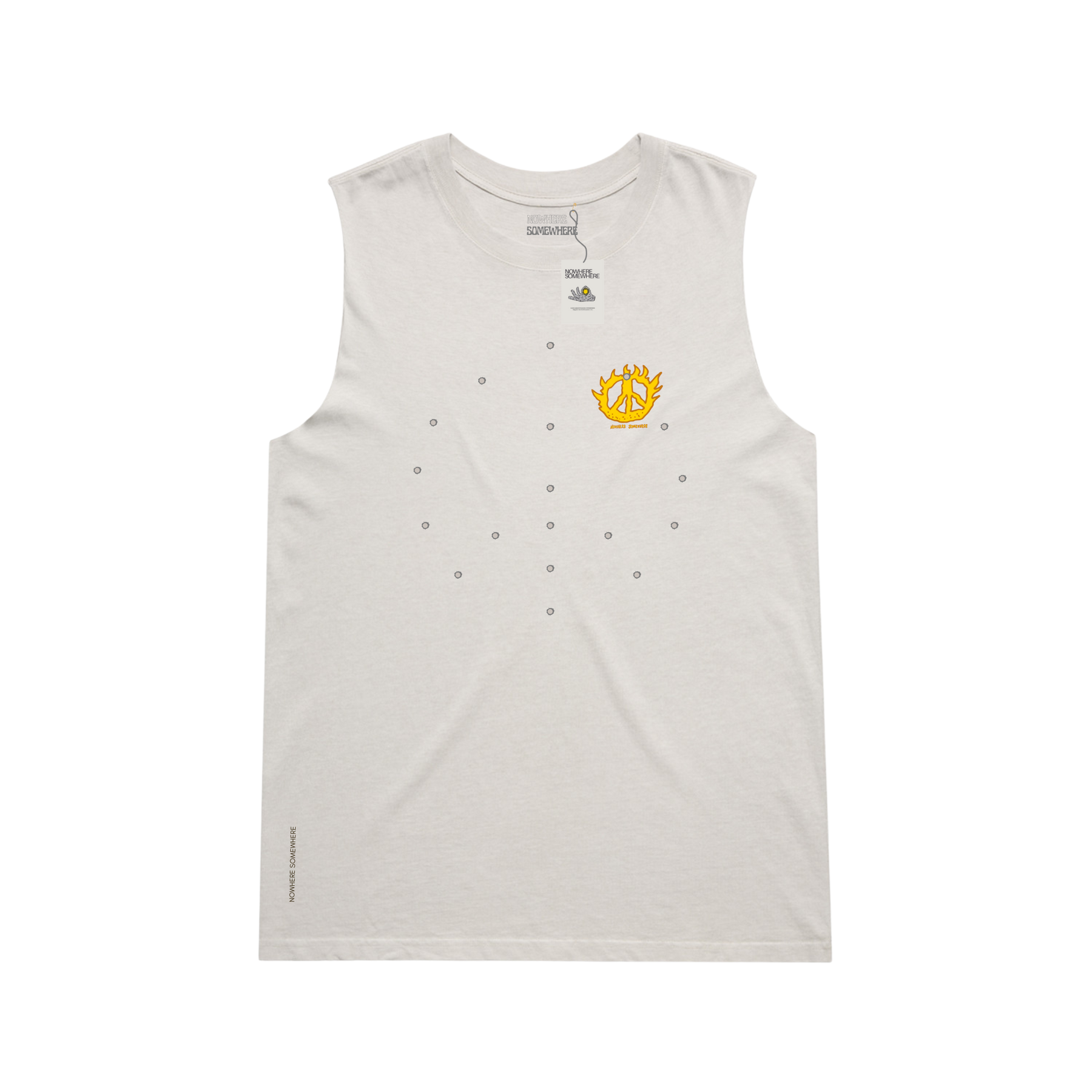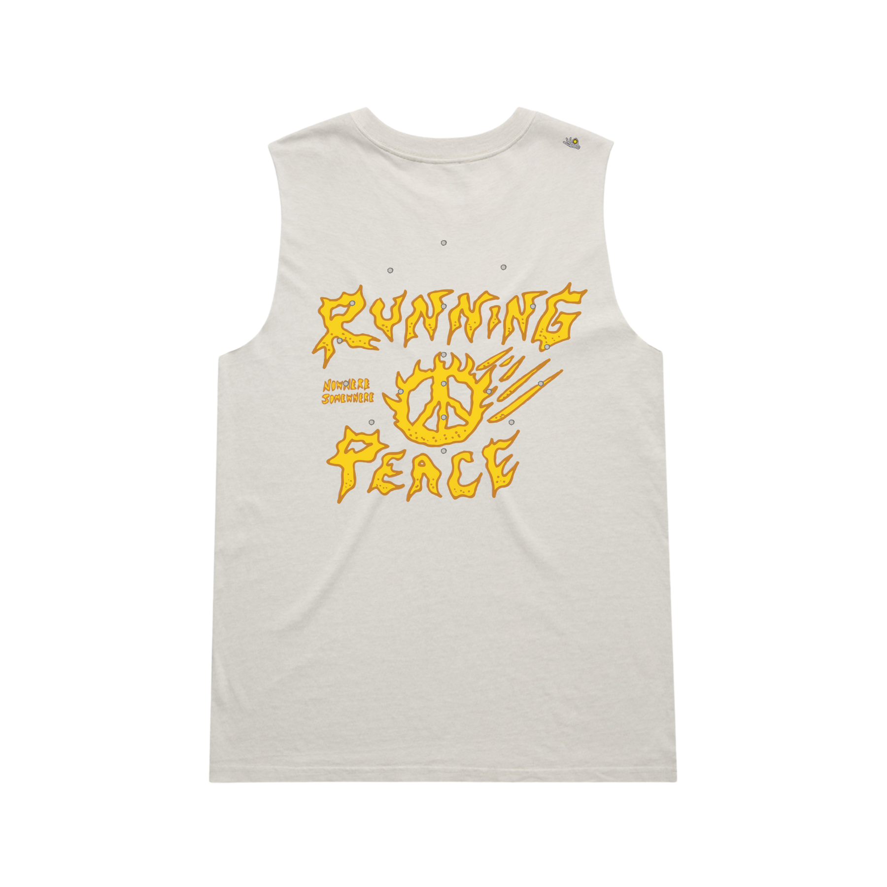 Nowhere Somewhere Running Peace Tank in bone with PeaceBreathe ventilation and Rebelyuth artwork