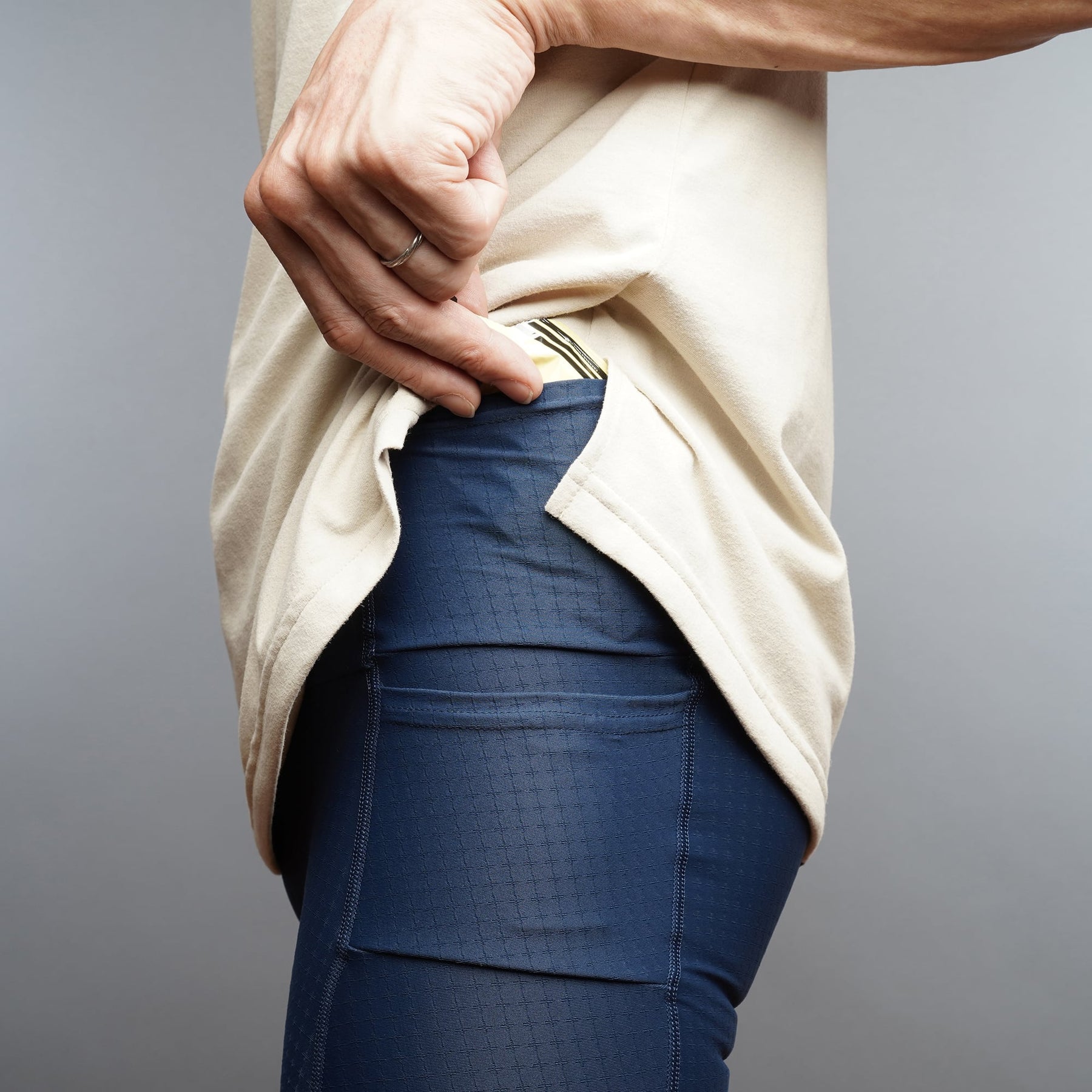 Poches avant, latérales et arrière conçues pour les gels et les petits accessoires essentiels de course (non compatibles avec les smartphones).